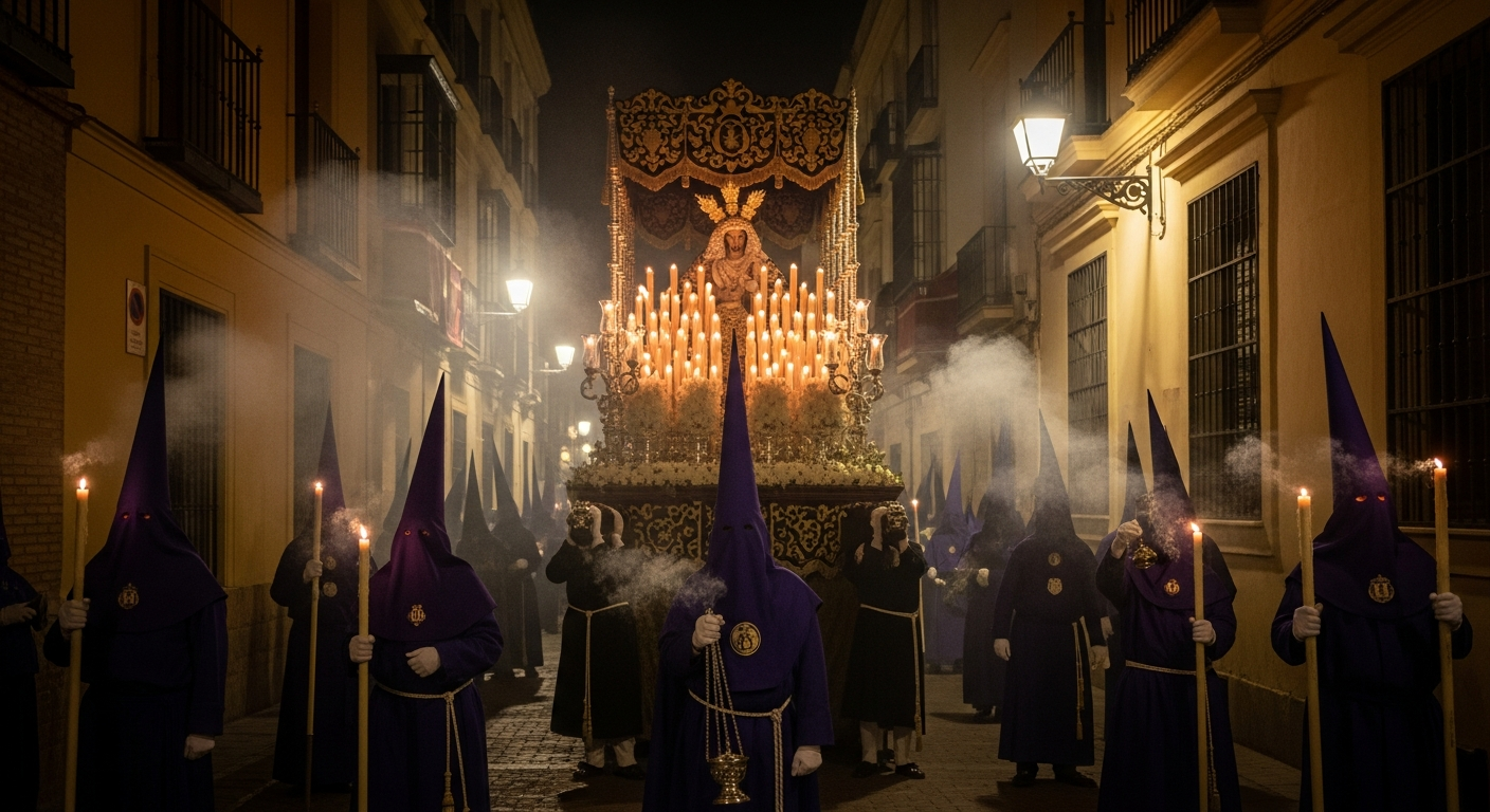 Granada combines its historic streets and mountain views with moving night processions. Watching a procession pass near the Alhambra is something you don’t forget.